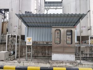 Pemasangan Signage (Rambu): Meliputi rambu dan label keselamatan yang jelas (misalnya: “SPILL KIT LOCATION”) yang dipasang pada kanopi untuk memudahkan identifikasi darurat.
